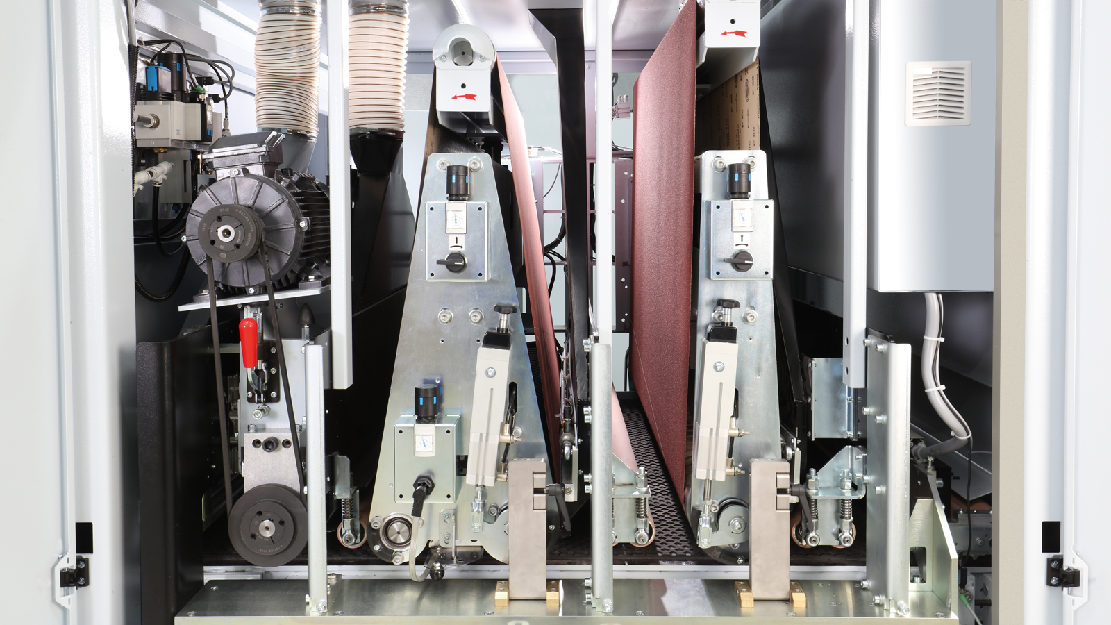 - Оптимальный контактный контроль и эффективное прижатие шлифовальной ленты за счет электронно-управляемой сегментированной системы прижимных балок